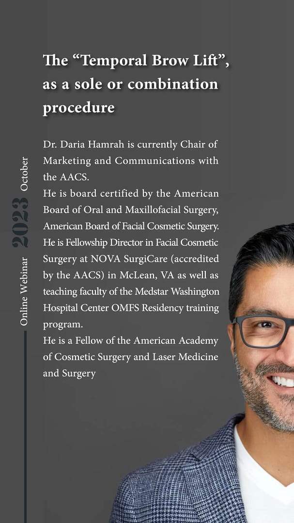 He is a Fellowship Director in Facial Cosmetic Surgery at NOVA SurgiCare (accredited by the AACS) in McLean, Va as well as teaching faculty of the MedStar Washington Hospital Center OMFS Residency training program.